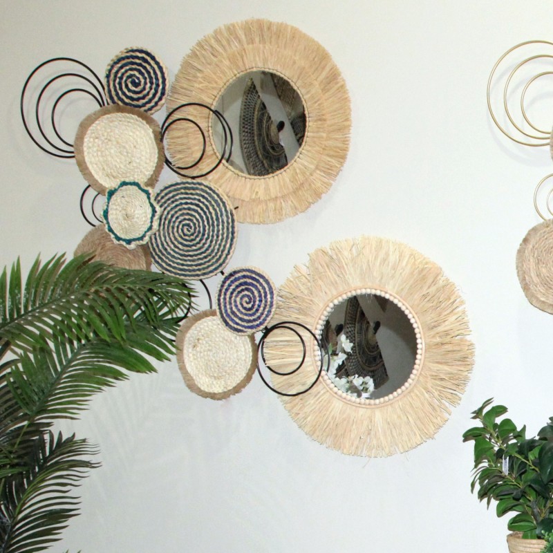 Adorno Pared Metal y Paja Trenzada