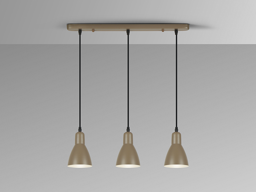 Lámpara de 3 luces realizada en metal, acabados marrón satinado. Regulable en altura. 3 E27.