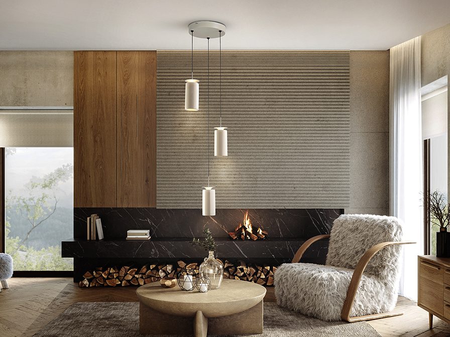 Lámpara realizada en metal acabado gris cálido. 3 Tulipas cerámicas acabado craquelado color crema. Cable negro. Regulable en altura. 24W LED, 3.000 K. 2.409 lm.