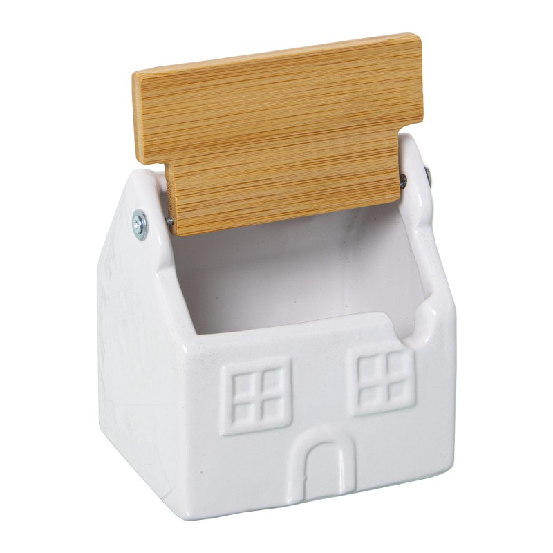 Detalles: Azucarero Cerámica Blanco C y Tapa Madera Bambú | Categoría: Cocina | Ref.: 01152