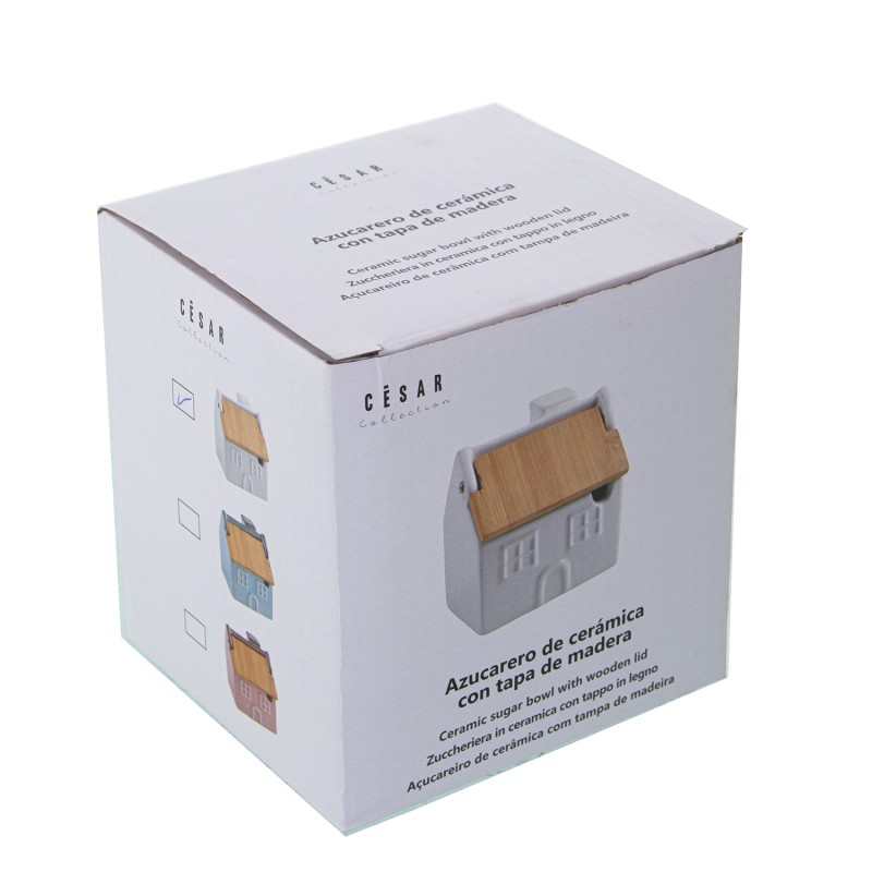 Azucarero Cerámica Blanco C y Tapa Madera Bambú