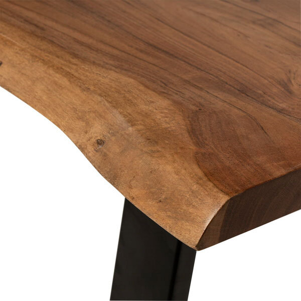 El banco TANAY celebra la belleza natural de la madera de acacia con un diseño curvilíneo que realza sus vetas orgánicas y tonos cálidos. Su forma suave y elegante aporta ligereza visual, mientras que el acabado natural refuerza su carácter auténtico y atemporal. Disponible en 140 y 160 cm, se adapta perfectamente a comedores, recibidores o incluso dormitorios de estilo rústico moderno o escandinavo. Las patas metálicas angulares en negro introducen un contraste sutil que equilibra lo natural con lo industrial, logrando una pieza versátil, decorativa y funcional.