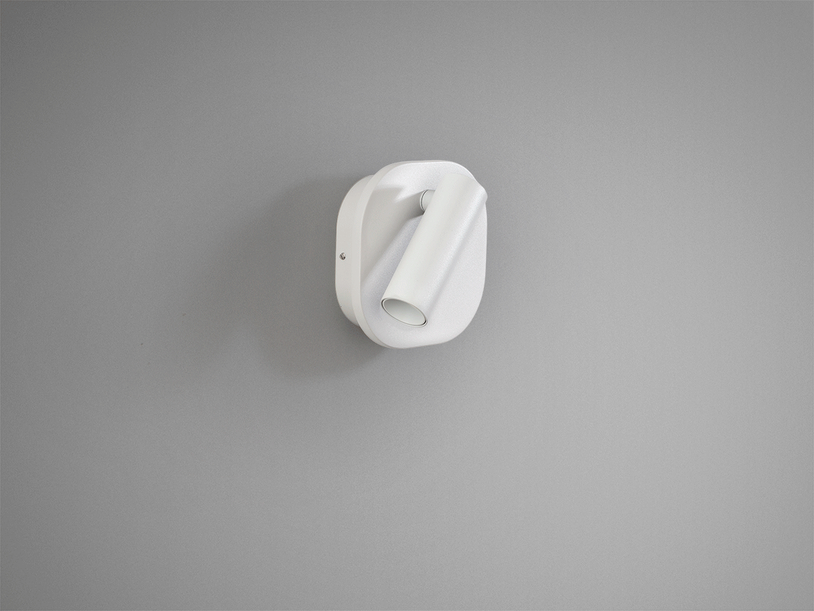Lámpara de pared en aluminio, acabado blanco. Iluminación: Foco de lectura 2,1W y retroiluminación de 6W, ambos LED CCT y regulación independiente de tono de luz e intensidad por pulsador táctil. LED 8,1W, CCT: 2700-4000 K. 167+391 lm. DIMABLE.