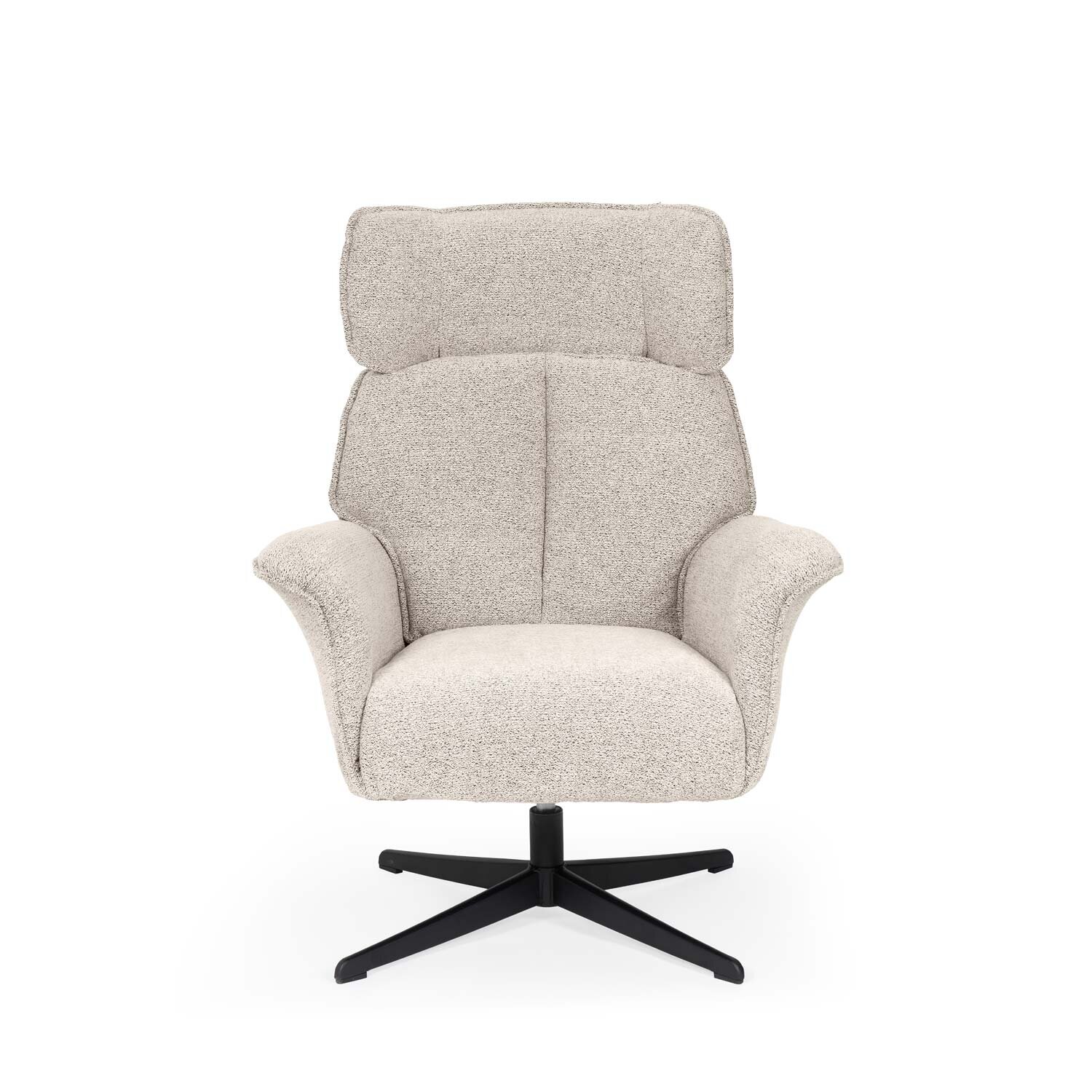La butaca LYNN destaca por su diseño envolvente y sofisticado, con líneas que combinan suavidad y estructura para ofrecer una experiencia de descanso superior. Su respaldo alto con formas ergonómicas se adapta al cuerpo, mientras que los apoyabrazos ligeramente curvados aportan un plus de confort y elegancia. Tapizada en un tejido de textura suave y disponible en tres tonos versátiles —beige, gris y taupe—, se integra con facilidad en interiores modernos, clásicos o nórdicos. La base metálica negra, robusta y estilizada, incorpora un mecanismo giratorio de 360º que suma practicidad sin sacrificar estilo. Perfecta para salones, despachos o rincones de relax, la butaca LYNN se convierte en una pieza aún más cómoda y funcional cuando se combina con el reposapiés DIDIER , diseñado a juego para completar la experiencia.