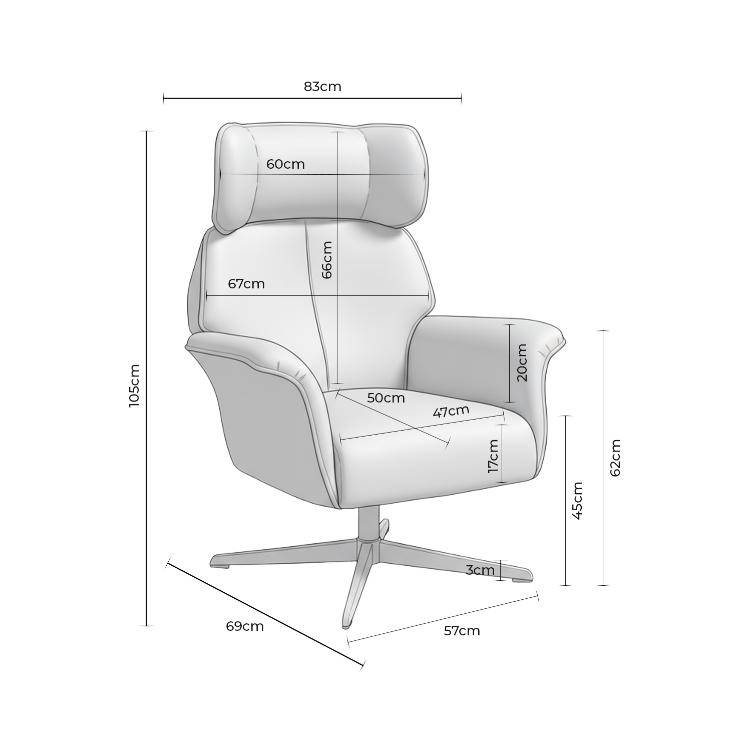 La butaca LYNN destaca por su diseño envolvente y sofisticado, con líneas que combinan suavidad y estructura para ofrecer una experiencia de descanso superior. Su respaldo alto con formas ergonómicas se adapta al cuerpo, mientras que los apoyabrazos ligeramente curvados aportan un plus de confort y elegancia. Tapizada en un tejido de textura suave y disponible en tres tonos versátiles —beige, gris y taupe—, se integra con facilidad en interiores modernos, clásicos o nórdicos. La base metálica negra, robusta y estilizada, incorpora un mecanismo giratorio de 360º que suma practicidad sin sacrificar estilo. Perfecta para salones, despachos o rincones de relax, la butaca LYNN se convierte en una pieza aún más cómoda y funcional cuando se combina con el reposapiés DIDIER, diseñado a juego para completar la experiencia.