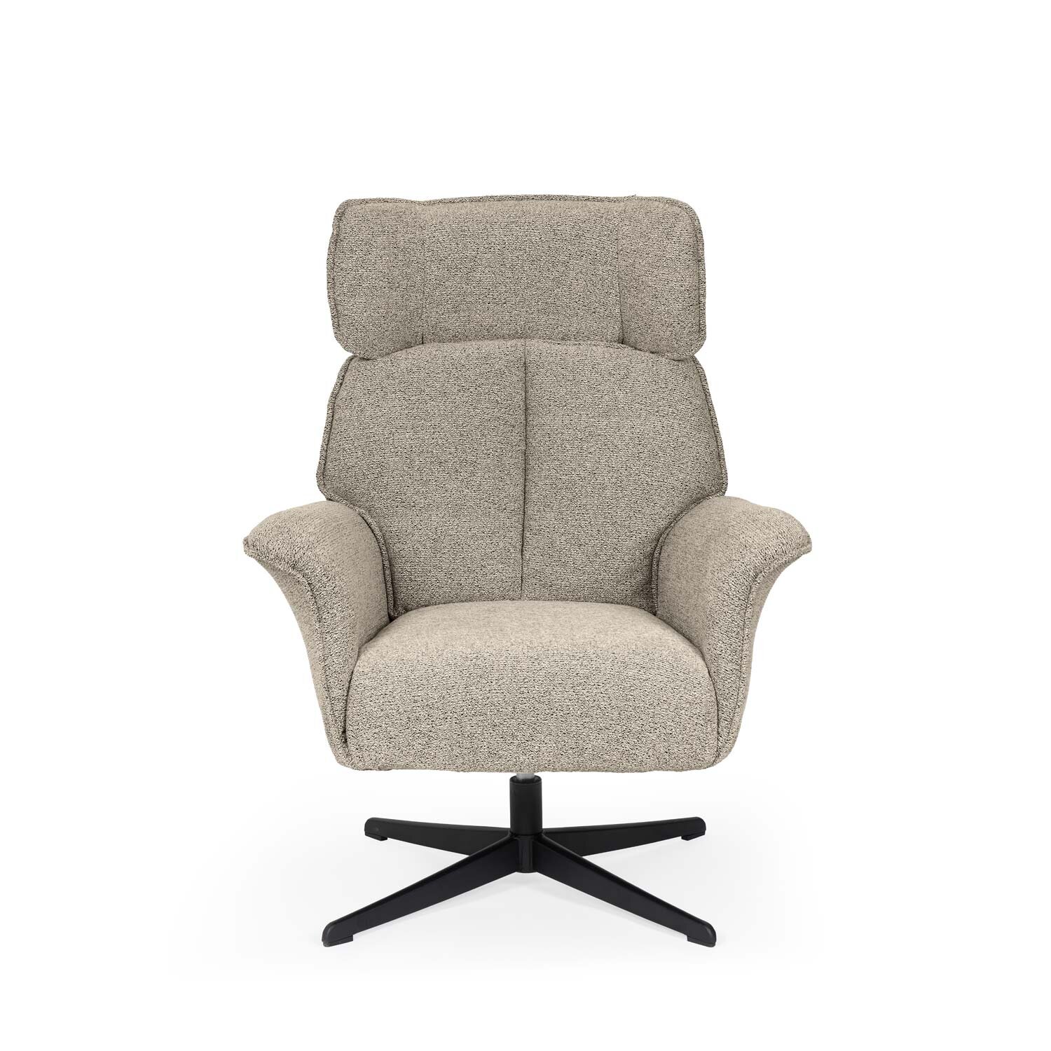 La butaca LYNN destaca por su diseño envolvente y sofisticado, con líneas que combinan suavidad y estructura para ofrecer una experiencia de descanso superior. Su respaldo alto con formas ergonómicas se adapta al cuerpo, mientras que los apoyabrazos ligeramente curvados aportan un plus de confort y elegancia. Tapizada en un tejido de textura suave y disponible en tres tonos versátiles —beige, gris y taupe—, se integra con facilidad en interiores modernos, clásicos o nórdicos. La base metálica negra, robusta y estilizada, incorpora un mecanismo giratorio de 360º que suma practicidad sin sacrificar estilo. Perfecta para salones, despachos o rincones de relax, la butaca LYNN se convierte en una pieza aún más cómoda y funcional cuando se combina con el reposapiés DIDIER , diseñado a juego para completar la experiencia.