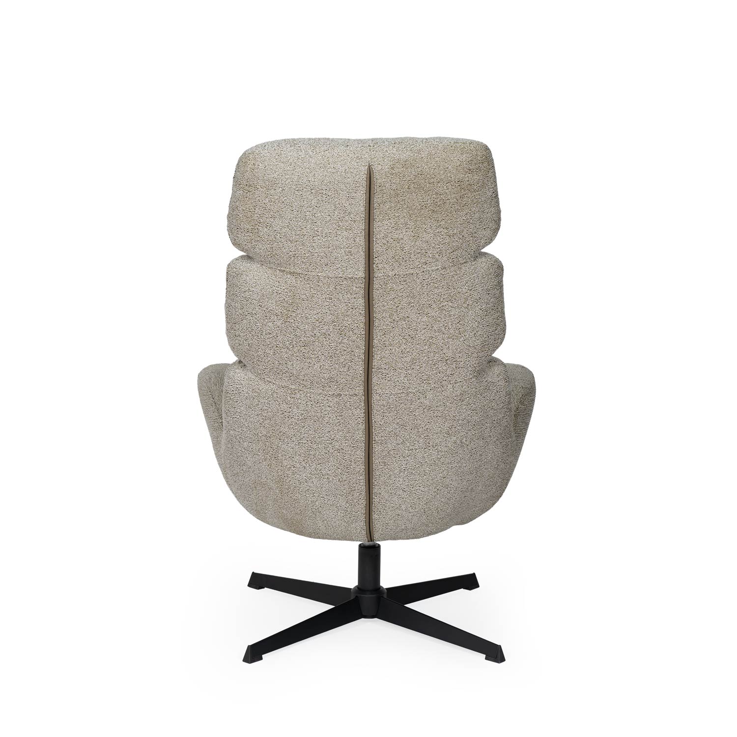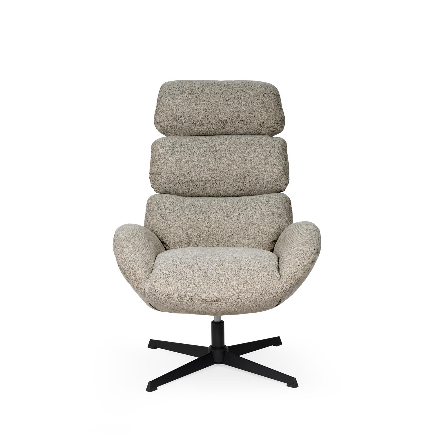 La butaca PAULINE combina diseño envolvente y máximo confort en una pieza de líneas suaves y estructura ergonómica. Su respaldo alto dividido en tres secciones acolchadas proporciona un excelente soporte para la espalda, el cuello y la cabeza, mientras que sus amplios brazos invitan a disfrutar de largos momentos de descanso. Tapizada en un tejido suave disponible en tonos beige, gris y taupe, se adapta fácilmente a diferentes estilos decorativos, desde espacios contemporáneos hasta ambientes más clásicos o relajados. Su base metálica negra en forma de estrella no solo aporta estabilidad, sino que integra un mecanismo giratorio de 360º, que añade dinamismo y funcionalidad al conjunto. Perfecta para salones, zonas de lectura o espacios de relax, la butaca PAULINE es aún más completa cuando se combina con el reposapiés DIDIER , diseñado a juego para ofrecer una experiencia de descanso superior.