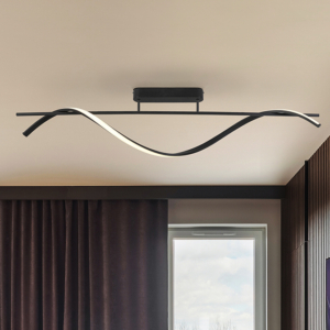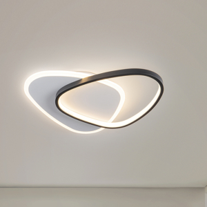 Plafón de techo realizado en aluminio y acero acabado negro mate. Difusor de silicona opal. Iluminación LED 68W, CCT: 2700-5000 K. 4.800 lm. DIMABLE. Incluye mando a distancia.