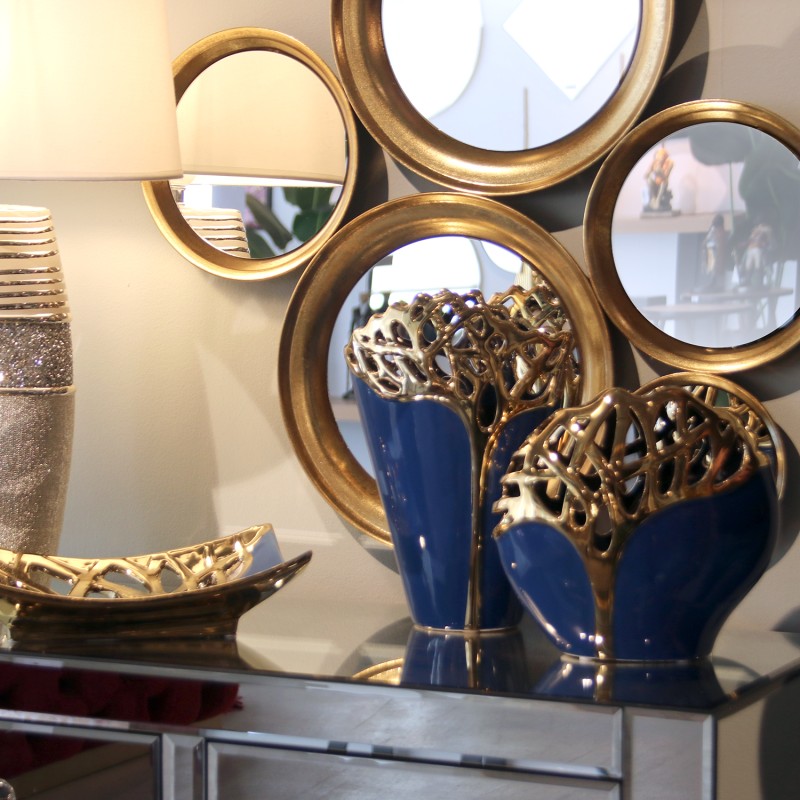 Detalles: Centro Cerámica Azul y Dorada | Categoría: Decoracion Ceramica | Ref.: 51071