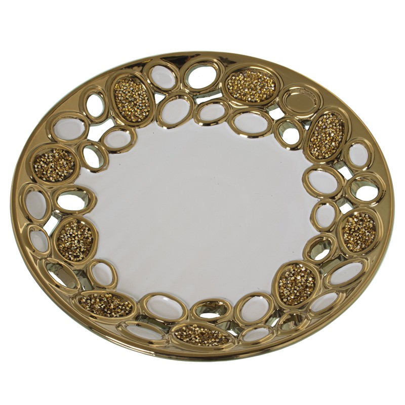 Centro Cerámica Redondo Blanco y Oro Calado