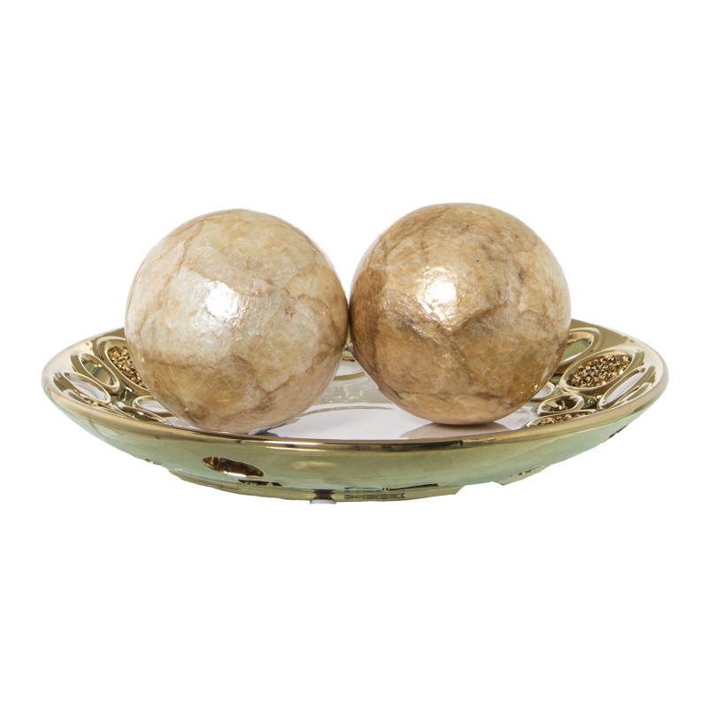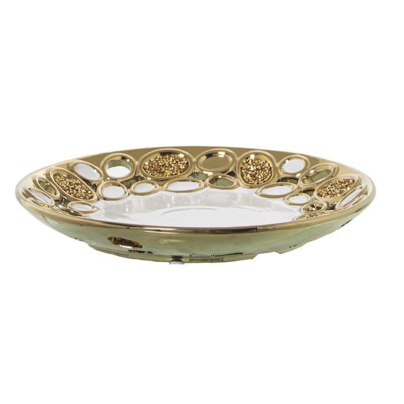 Detalles: Centro Cerámica Redondo Blanco y Oro Calado | Categoría: Decoracion Ceramica | Ref.: 52776