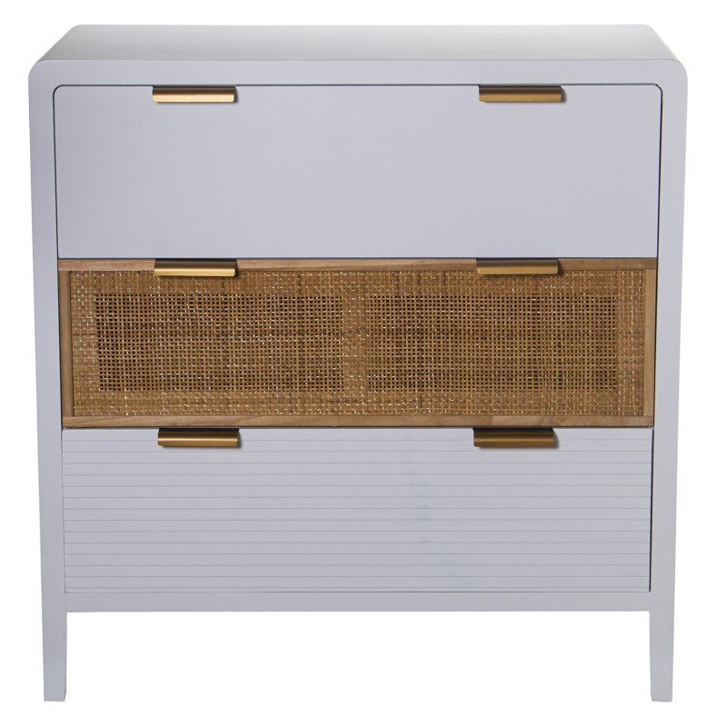 Cómoda Madera 3 Cajones Blanco y Ratán y Abeto y Dm y Ratán