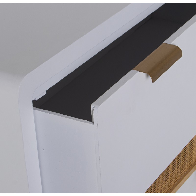 Detalles: Cómoda Madera 3 Cajones Blanco y Ratán y Abeto y Dm y Ratán | Categoría: Mueble Auxiliar | Ref.: 49895
