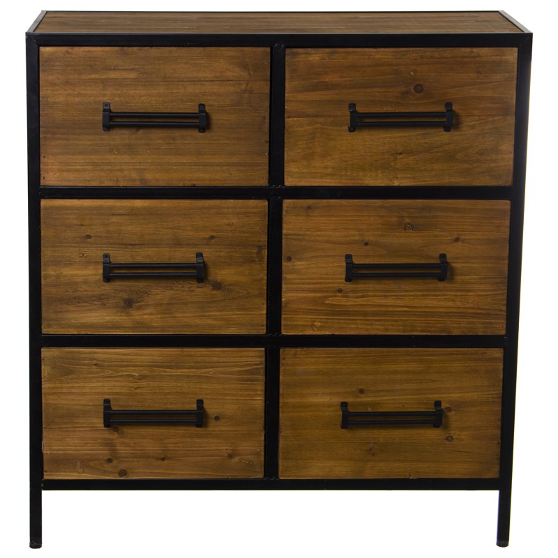 Cómoda Madera Metal C y 6 Cajones Abeto y Contrachapad