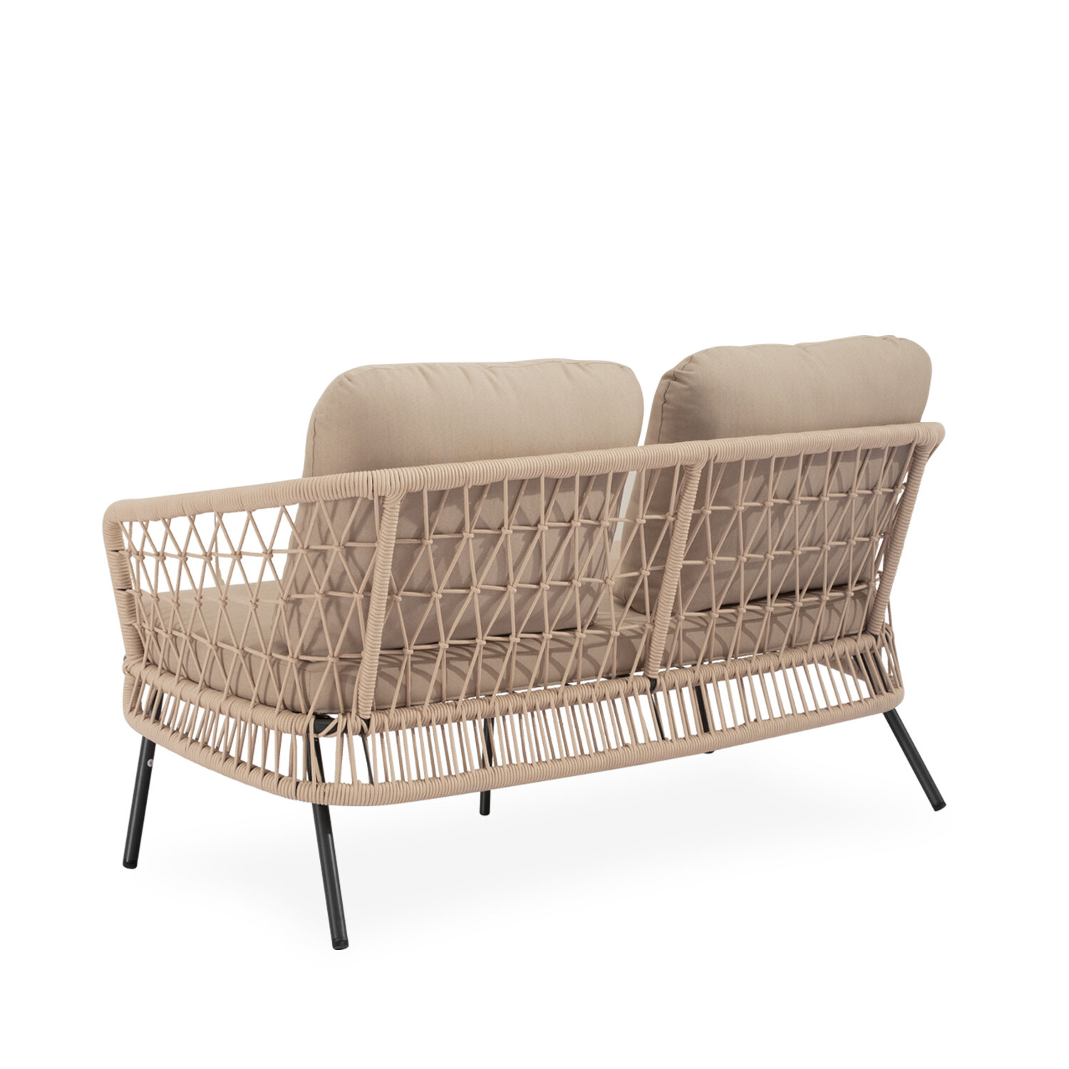 El conjunto ODESA combina diseño mediterráneo y resistencia para disfrutar del exterior con estilo. Incluye dos butacas, un sofá doble y una mesa de centro con tapa de cristal templado de 5 mm de grosor. Su estructura de acero galvanizado se entrelaza con cuerda sintética en tono beige, creando una estética cálida y ligera. Los cojines, cómodos y resistentes, están pensados para el uso exterior. Ideal para terrazas, patios o zonas chill-out, ODESA aporta confort, frescura y elegancia a cualquier ambiente al aire libre. Los artículos del conjunto no se venden por separado.