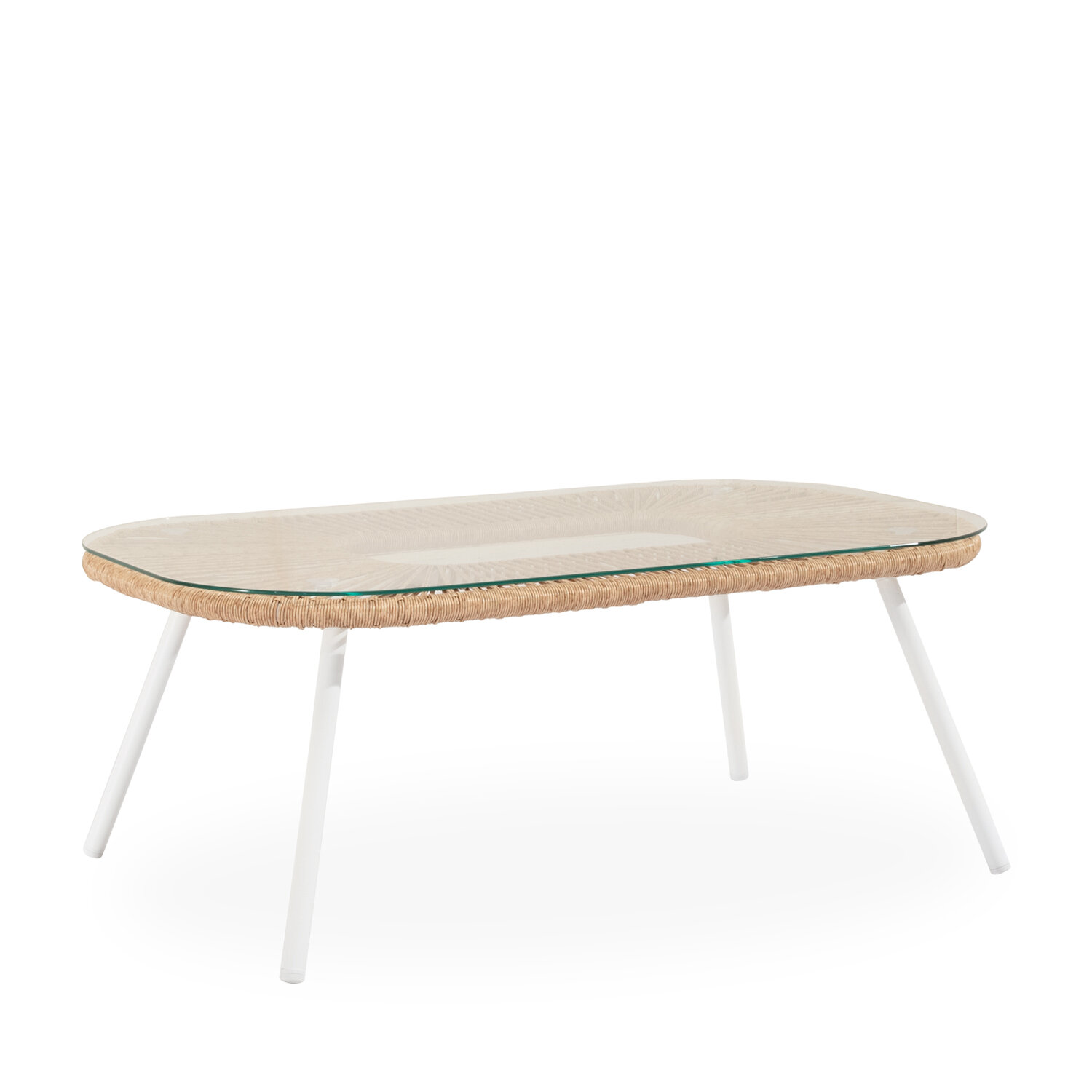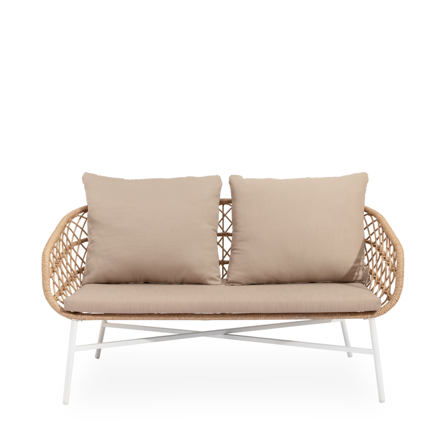 El conjunto PERUGIA destaca por su estética natural y acogedora, perfecta para transformar cualquier espacio exterior. Incluye dos butacas, un sofá doble y una mesa de centro con sobre de cristal templado de 5 mm de grosor, ideal para momentos de relax o reuniones al aire libre. Su estructura de acero galvanizado se combina con cuerda trenzada en acabado natural, aportando calidez y un aire artesanal. Los cojines, cómodos y resistentes, completan un conjunto versátil, pensado para jardines, terrazas o porches que buscan estilo sin renunciar a la funcionalidad. Los artículos del conjunto no se venden por separado.
