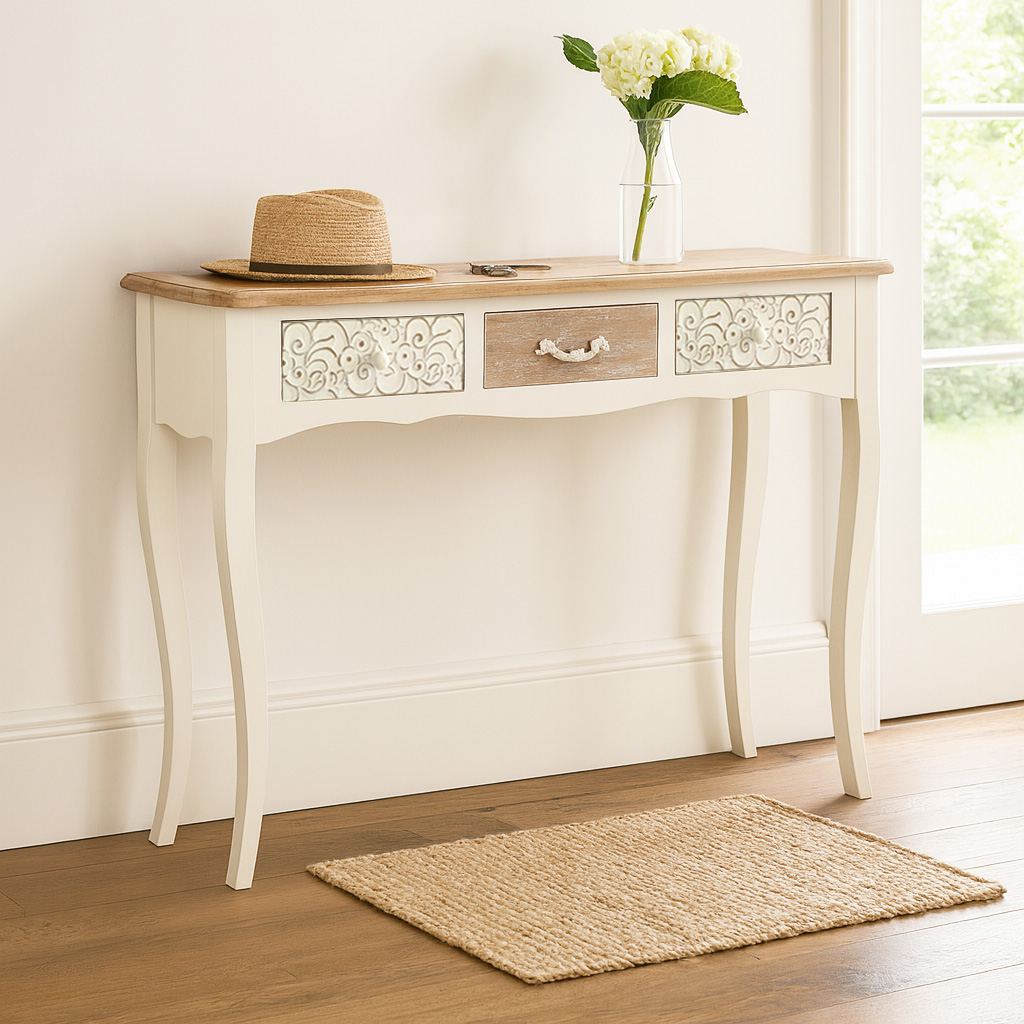CONSOLA RUSTICA BLANCA 3 CAJONES