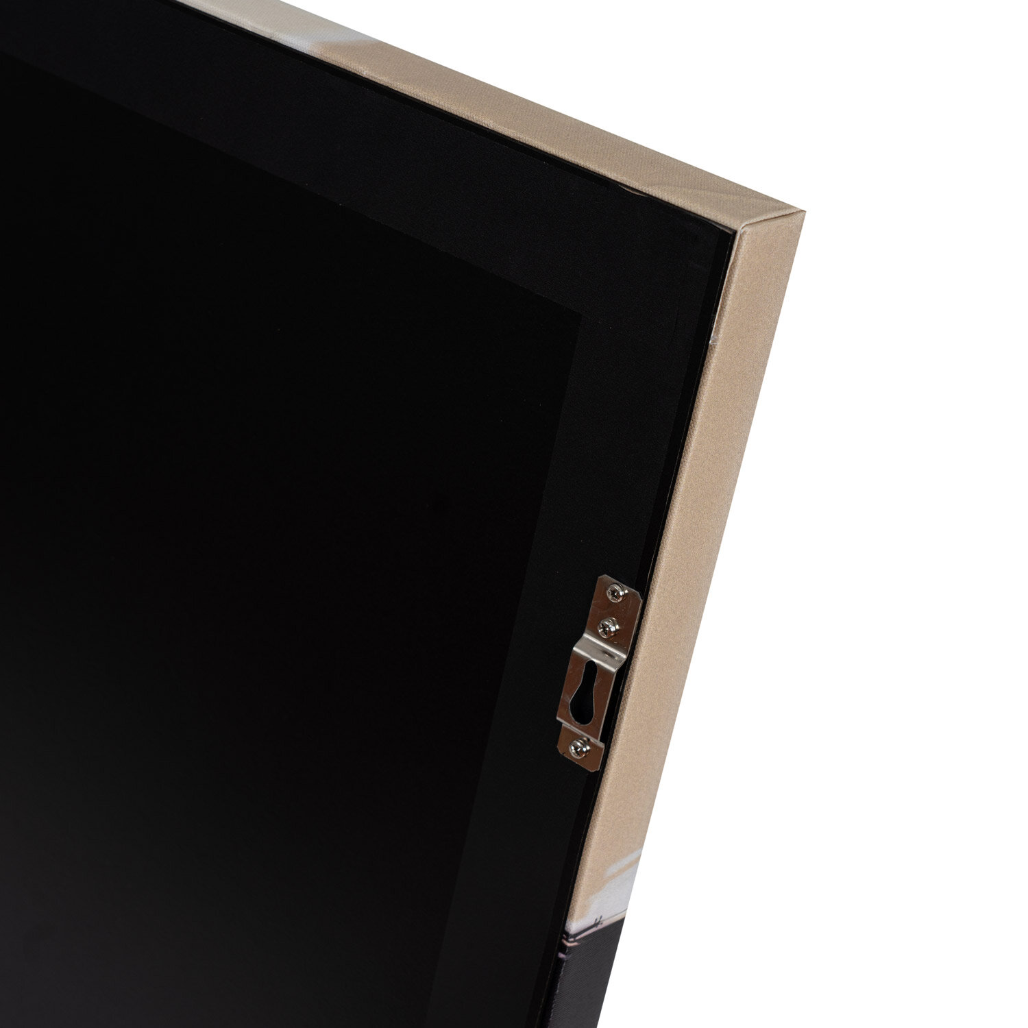 RAINFED combina bloques de color, líneas firmes y texturas sutiles para construir una composición abstracta que sugiere equilibrio, fragmentación y movimiento. Los tonos arena, negro, verdes, blanco roto y toques de dorado se cruzan con trazos verticales que marcan el ritmo visual de la obra. Su formato de 60×80 cm y la ausencia de marco refuerzan su estilo contemporáneo y limpio, perfecto para interiores modernos que buscan piezas con fuerza gráfica pero sin estridencias. Un lienzo pensado para dialogar con el espacio sin imponerse.