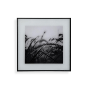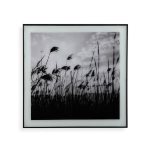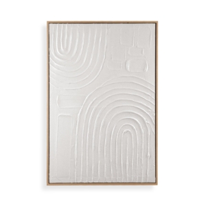 Busto clásico blanco con auriculares, composición con tira de luz led decorativa. Lienzo impreso, pegado sobre tabla y enmarcado en negro.
