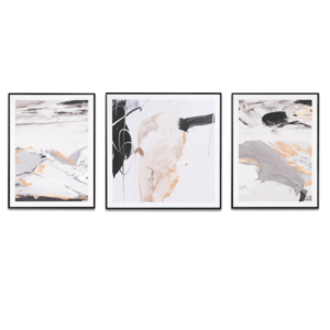 Cuatro trazos gruesos de pintura son los que componen GREEN OLD 2. Se sigue usando la paleta de colores de este collage: beige, verdes y blancos. De nuevo, el contraste del marco interior blanco con el exterior verde y un marco externo negro, le dan un aspecto muy elegante. Combínalo con el cuadro CUADRO GREEN OLD 3.
