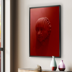 ·GEOMIA· Composición geométrica, realizada con láminas de EVA decoradas y montadas sobre bastidor. Marco de poliestireno negro. Preparado para colgar en posición vertical y horizontal.