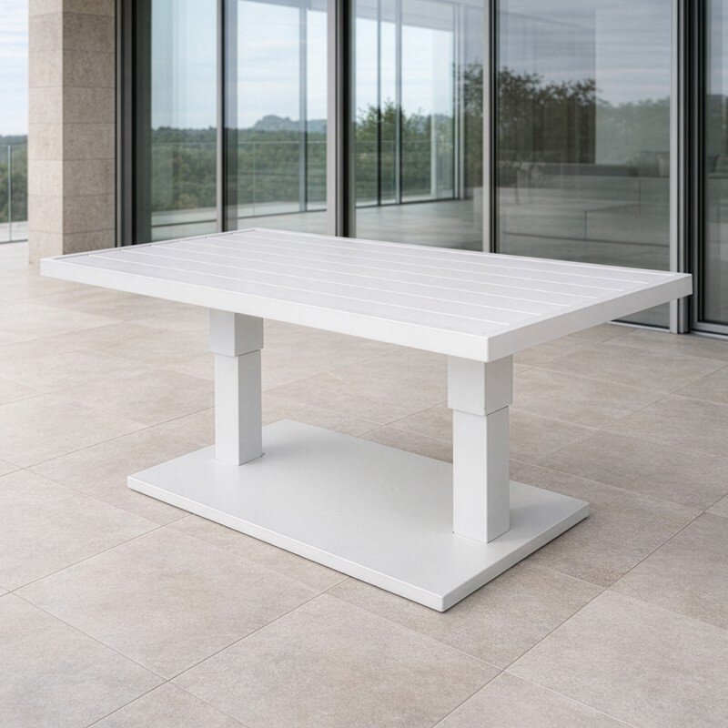 Mesa Exterior Aluminio Blanca Regulable En Alt. +91213+91214 140x82x45/68cm