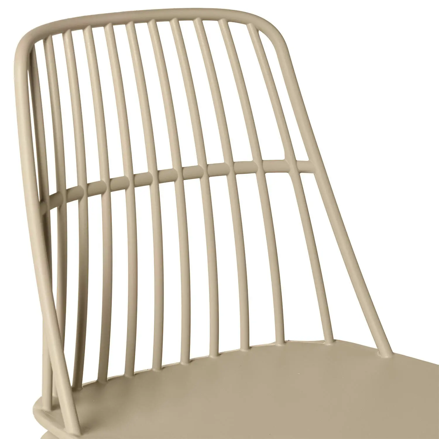 Silla de diseño moderno y minimalista, ideal para comedores, oficinas o salas de espera. La silla NERINA tiene el asiento y el respaldo compuesto de polipropileno; su diseño viene caracterizado por las barras delgadas del respaldo, proporcionándole un aspecto visualmente ligero. Las patas de metal delgadas refuerzan su estética contemporánea, haciendo de esta silla la pieza perfecta para interiores con un enfoque moderno o industrial.