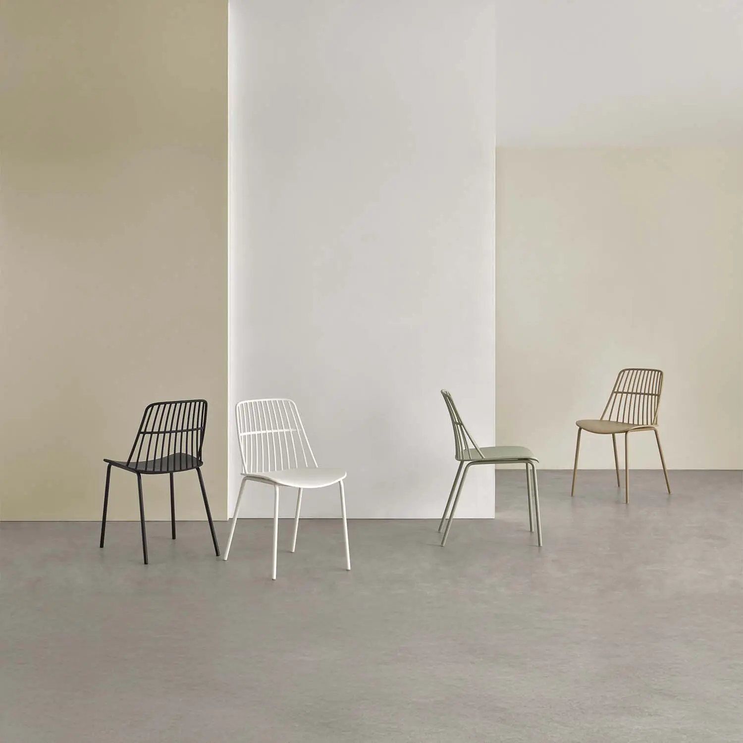 Silla de diseño moderno y minimalista, ideal para comedores, oficinas o salas de espera. La silla NERINA tiene el asiento y el respaldo compuesto de polipropileno; su diseño viene caracterizado por las barras delgadas del respaldo, proporcionándole un aspecto visualmente ligero. Las patas de metal delgadas refuerzan su estética contemporánea, haciendo de esta silla la pieza perfecta para interiores con un enfoque moderno o industrial.