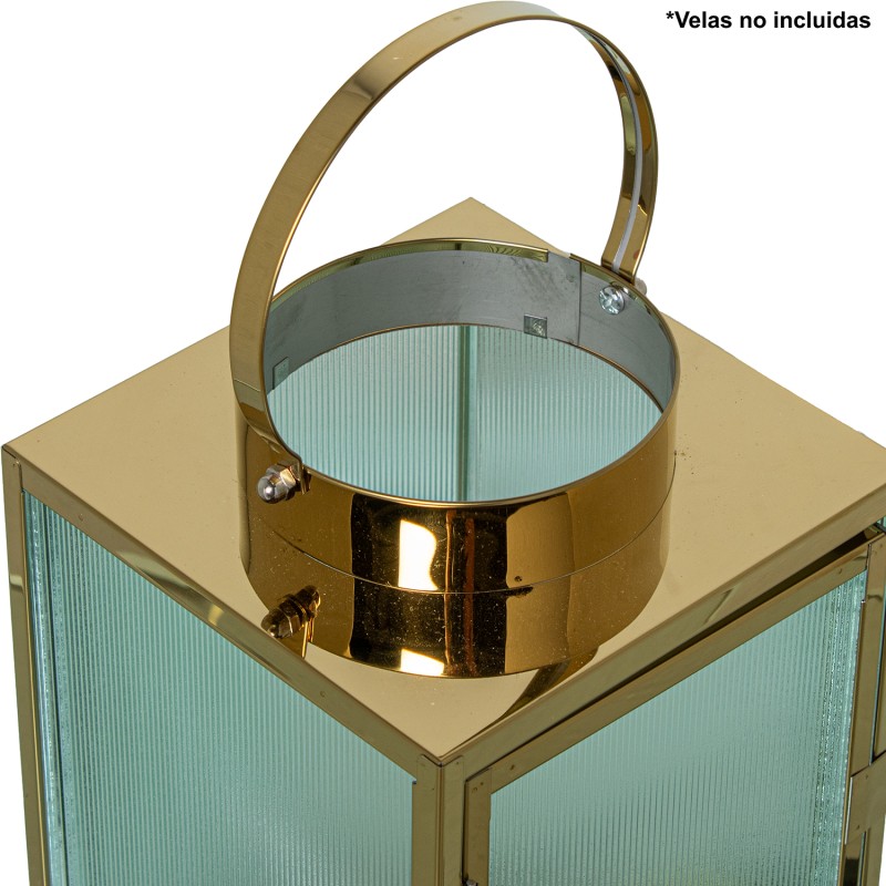 Farol Portavelas 20Cm Metal Cromado Dorado