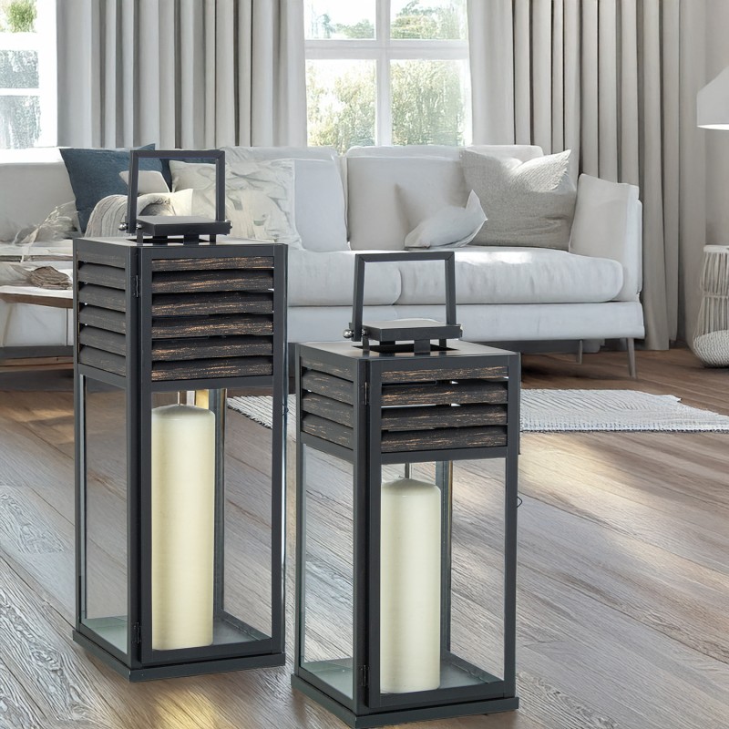 Detalles: Farol Portavelas 54Cm Metal Negro y Madera | Categoría: Decoracion Otros | Ref.: 61375