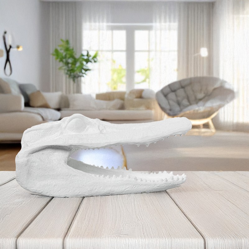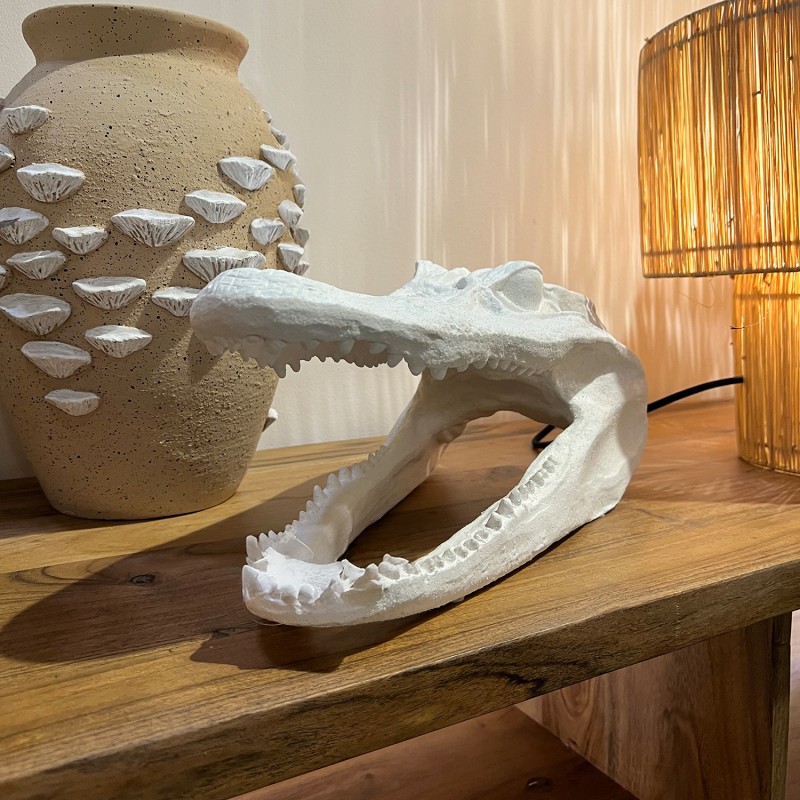 Figura Cerámica Cabeza de Cocodrilo Blanco