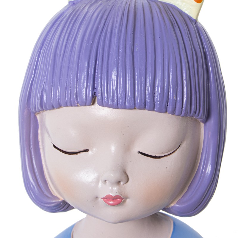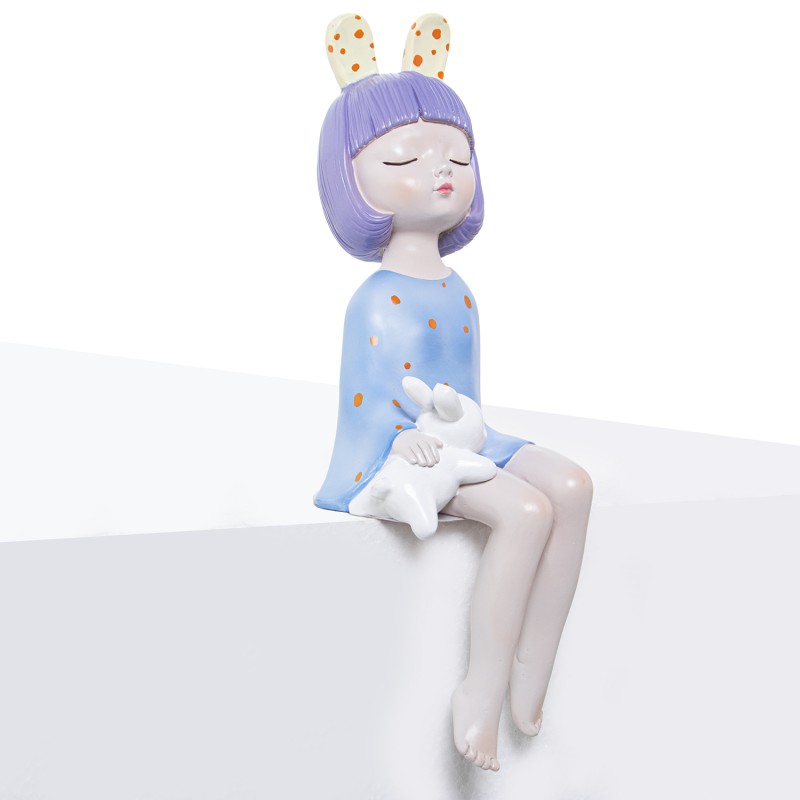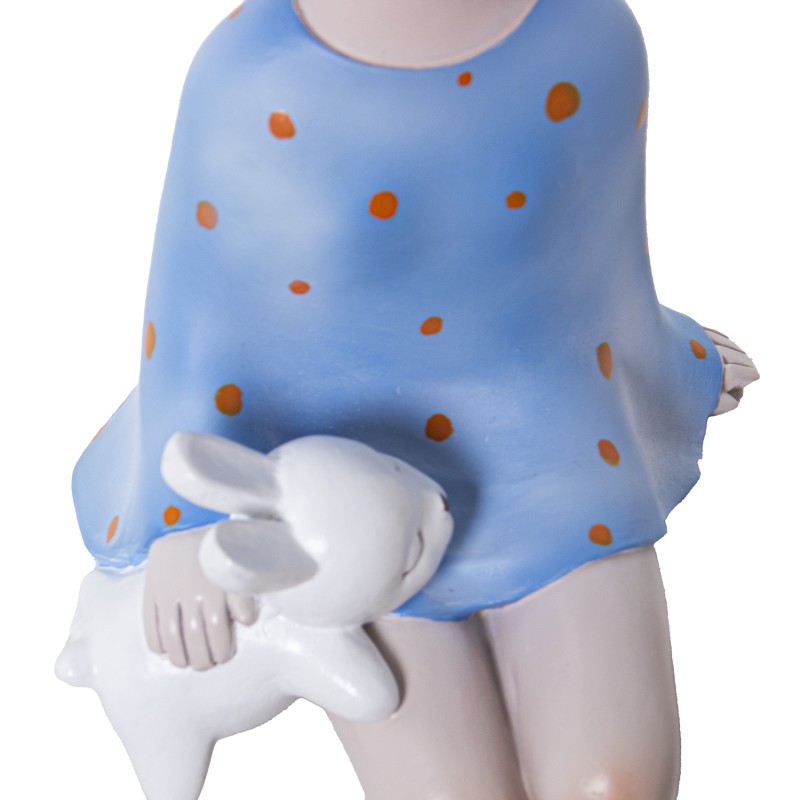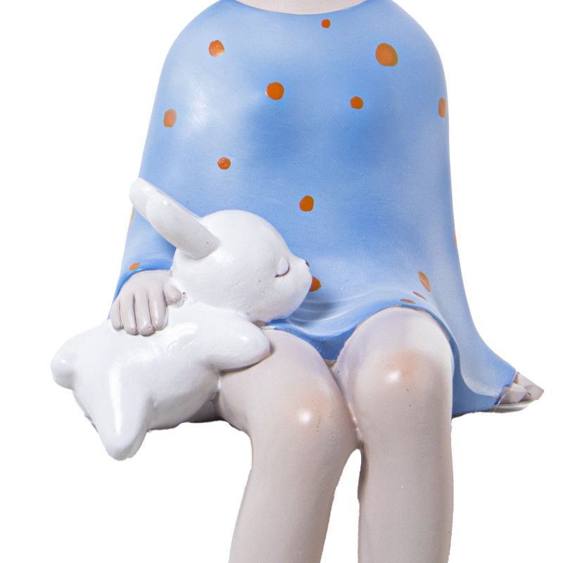 Figura Resina Chica Sentada Azul C y Orejas y Conejito