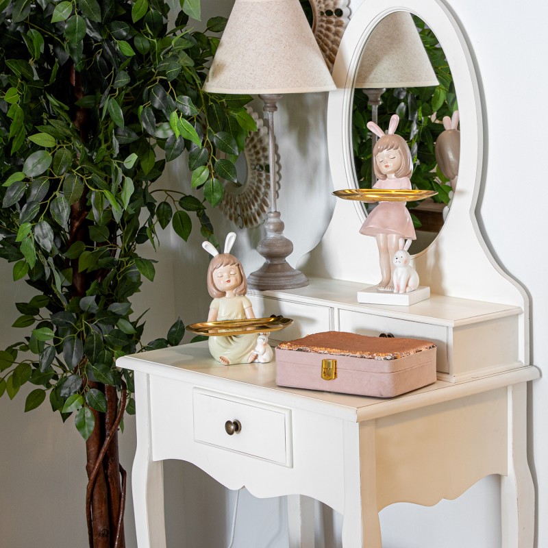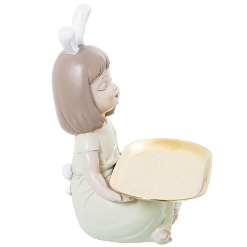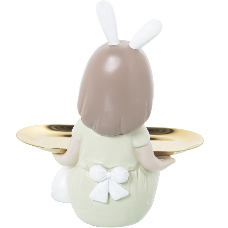 Figura Resina Chica Sentada C y Orejas y Bandeja Metal