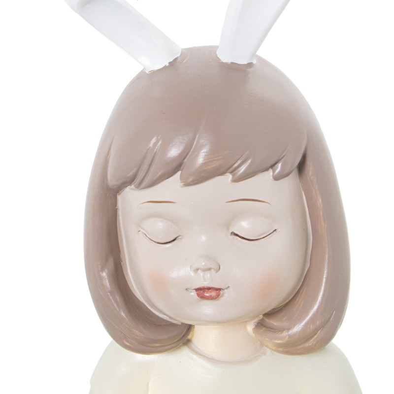 Figura Resina Chica Sentada Rosa C y Orejas y Conejito