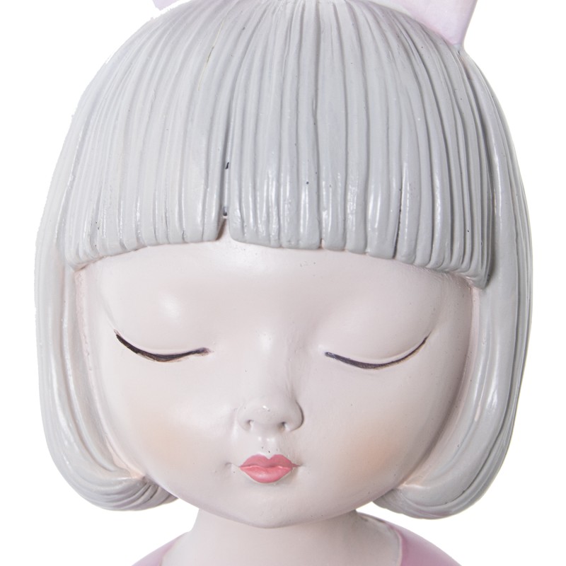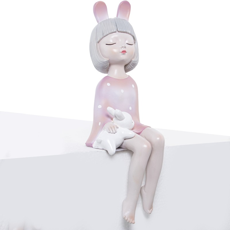 Figura Resina Chica Sentada Rosa C y Orejas y Conejito