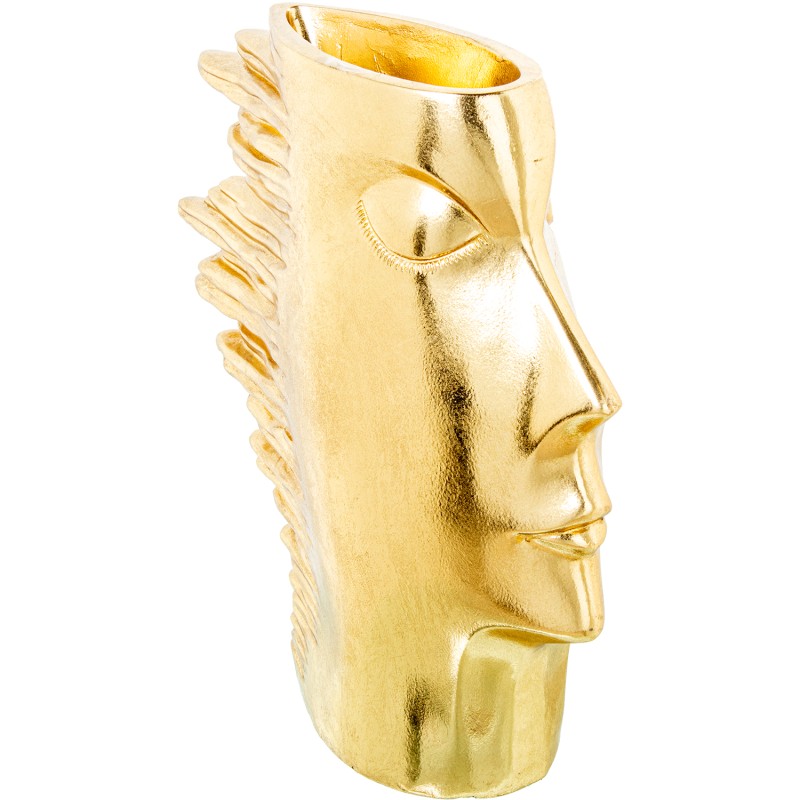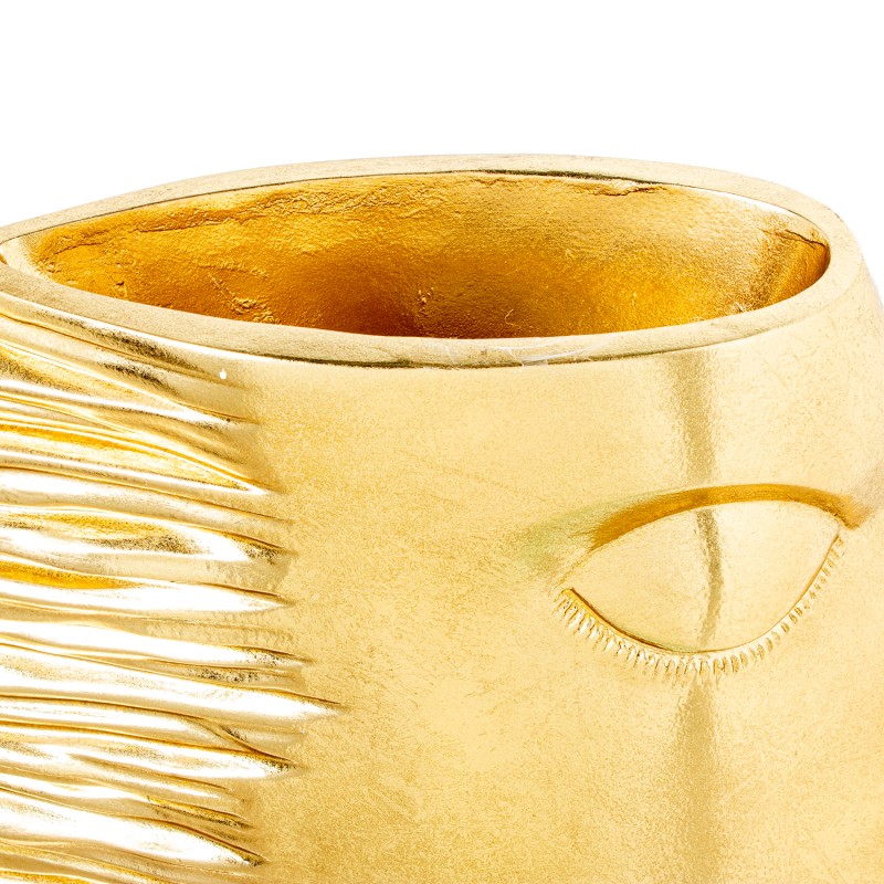 Figura y Jarrón Resina Cara Dorada Hueco Jarrón:15Cm