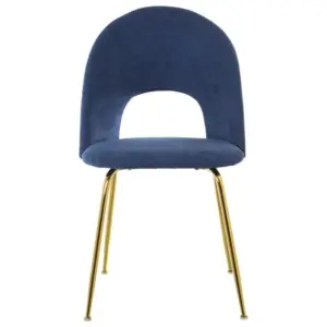 Sillón, Tapizado textil de poliéster 100% en color azul oscuro con pespunte decorativo. Limpieza en seco. Patas metálicas en acabado negro mate. Asiento y respaldo de madera contrachapada y espuma.