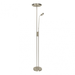 Pie de salón serie WOLF con lector, de color CUERO. Realizado en metal y tulipas de cristal. Presenta TECNOLOGÍA LED INTEGRADO con una potencia de 18 watios y 1800 lúmenes en su parte superior y 5 watios con 500 lúmenes en su brazo lector, con una temperatura en ambas luces de 4000ºK, BLANCO NATURAL. Este Pie de diseño moderno y elegante, presenta un brazo lector orientable que permite direccionar el punto de luz donde desee y REGULADOR DE INTENSIDAD. Es ideal tanto para estudios y espacios de trabajo como para punto de luz auxiliar en salones y salas de espera. Sus dimensiones son de 178X31,5X31,5 centímetros y su peso neto es de 6420 gramos. Modelo también disponible en color níquel.