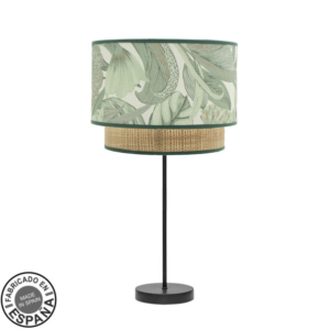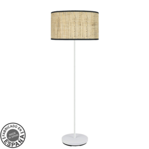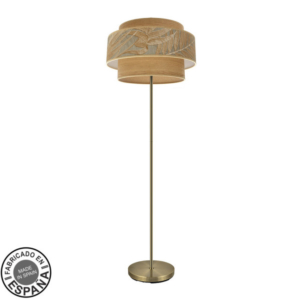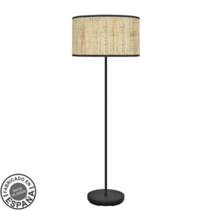Pie de Salón de la serie SAMOA de color NEGRO y pantalla de diseño en CAMEL. Realizado en metal y textil. Su pantalla se compone de tres cuerpos ribeteados, con un bonito estampado decogarden en su pantalla central, combinando el efecto madera con plantas, resultando una composición muy vistosa y original. De estilo moderno, pero con líneas sencillas, idóneo para ambientes decorados con los nuevos estilos de decoración en los que se mezclan elementos naturales con plantas, conectando con la naturaleza y añadiendo a la estancia que iluminan frescura y vitalidad. Muy combinable con estilos Boho e Industriales modernos pero dando un toque de elegancia a dormitorios, salones, comedores y zonas de trabajo. Posee un portalámparas E27. Bombilla no incluida. Sus dimensiones son de 168x40x40 centímetros. Podemos adquirir en esta serie una gran cantidad de productos a juego como son colgantes de 50, 40 y 30 centímetros de diámetro, dos tamaños de sobremesas, aplique y el pie de salón, todos combinando con los colores cuero/camel y negro/camel.