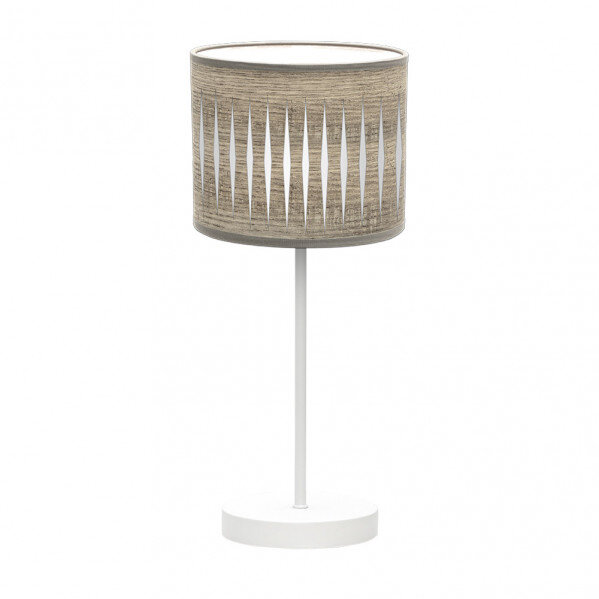 Detalles: Color: Blanco/Madera Gris. Peso Neto: 760. Peso Bruto: 900. Medidas embalaje: 34x18x18. Dimensiones (alto x ancho x fondo): 42X17X17. Voltaje: 220-240 V. Uso (Interior/Exterior): Recomendado para interiores. Bombillas incluidas: No. Proyección de la luz: Luz difusa general. Tipo de instalación: En superficie. Uso: Doméstico. Diámetro: 17. Difusor: Pantalla. Material Pantalla: Textil. Material Armazón: Metal. Color Pantalla: Madera Gris/Blanco. Color Armazón: Blanco. Portalámparas: 1xE14. Certificado CE: true. Certificado Reciclaje: true