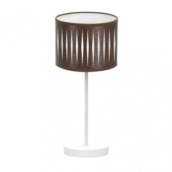 Detalles: Color: Blanco/Oxido. Peso Neto: 760. Peso Bruto: 900. Medidas embalaje: 34x18x18. Dimensiones (alto x ancho x fondo): 42X17X17. Voltaje: 220-240 V. Uso (Interior/Exterior): Recomendado para interiores. Bombillas incluidas: No. Proyección de la luz: Luz difusa general. Tipo de instalación: En superficie. Uso (Doméstico/Profesional): Doméstico. Diámetro: 17. Difusor: Pantalla. Material Pantalla: Textil. Material Armazón: Metal. Color Pantalla: Oxido/Blanco. Color Armazón: Blanco. Portalámparas: 1xE14. Certificado CE: true. Certificado Reciclaje: true