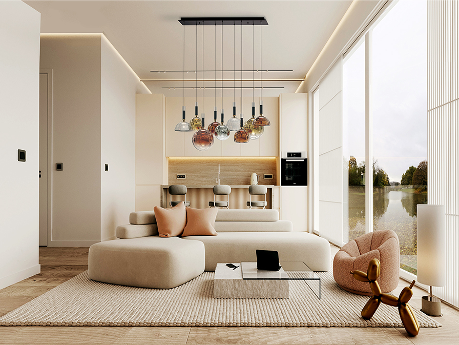 Lámpara de 9 luces, realizada en aluminio cepillado acabado en tono bronce oscuro. Tulipas cristal espejado con baño electrolítico en tonos cobre, dorado, plata y cristal transparente, luz LED y difusor acrílico opal. 54W LED,1.980 lm, 3000K. DIMABLE
