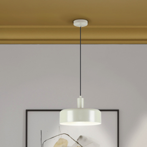 Lámpara de 1 luz realizada en metal acabado negro. Pantalla doble: exterior de cuerda de papel trenzado en combinado beis y negro, pantalla interior textil.