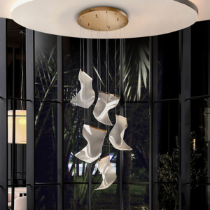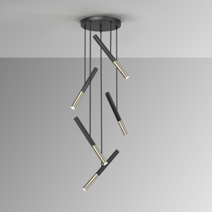 Lámpara LED, realizada en aluminio cepillado, acabado oro rosa. Difusores de silicona opal. Regulable en altura. 22W, 1.980 lm, 3.000 K.