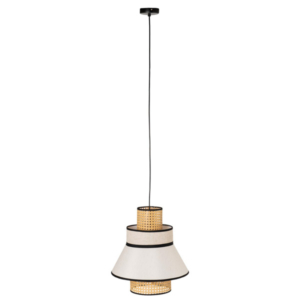 Detalles: Medida pantalla: ø50 x 22 cm | Medida pletina techo: ø10 x 2,50 cm | Medida cable: 110 cm | Peso producto: 1,70 kg | Advertencia tolerancia: +/- 1 cm | | Nº paquetes: 1 | Artículos por paquetes: 1 | Dimensión paquete: 55 x 55 x 24 cm | Peso paquete: 2 kg | Manipulación: 1 persona | Estructura: METAL/CUERDA DE CÁÑAMO | Tipo bombilla: 220/240 E27 MAX:40W (NO INCLUIDA) | Código del producto: 00LP105507 | | Las imágenes y/o colores de los productos pueden variar ligeramente por motivos de calibrado de pantalla, luz ambiente de la fotografía, ángulo de la misma, remesa producción madera, textil, etc. | Recomendaciones: | | Uso y mantenimiento: |
