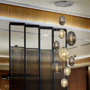 Plafón realizado en metal acabado cromo. Tulipa de cristal espejado. Lágrimas interiores de cristal tipo murano. DIMABLE. Incluye mando a distancia.