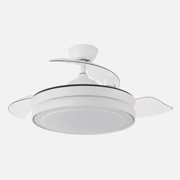 Detalles: Color: Blanco. Peso Neto: 4850. Peso Bruto: 6070. Medidas embalaje: 27x45x45. Dimensiones (alto x ancho x fondo): 32/47X40/91. Material: Metal / ABS / Policarbonato. Potencia: 59 W. Lúmenes: 6980. Temperatura luz: 3000-4000-6000. Voltaje: 220-240 V. Clasificación energética: F. Color de la luz: Blanco Cálido, Frío y Natural. Uso (Interior/Exterior): Recomendado para interiores. Tipo de iluminación: Tecnología LED integrada. Proyección de la luz: Luz difusa general. Tipo de instalación: En superficie. Mando a distancia incluido: Mando a distancia incluido. Ahorro de energía: Ahorro de energía. Uso (Doméstico/Profesional): Doméstico. Número de aspas: 3. Número de velocidades ajustables: 6. Control de aire para verano o invierno: Verano e Invierno. Medida del diámetro (cm.): 91. _Velocidad_1_Consumo: 5,2. _Velocidad_2_Consumo: 6,5. _Velocidad_3_Consumo: 8,6. _Velocidad_4_Consumo: 11,2. _Velocidad_5_Consumo: 14,5. _Velocidad_6_Consumo: 17,7. _Velocidad_1_RPM: 170. _Velocidad_2_RPM: 190. _Velocidad_3_RPM: 210. _Velocidad_4_RPM: 230. _Velocidad_5_RPM: 250. _Velocidad_6_RPM: 270. _Velocidad_1_Flujo Aire: 1200. _Velocidad_2_Flujo Aire: 1500. _Velocidad_3_Flujo Aire: 2100. _Velocidad_4_Flujo Aire: 2600. _Velocidad_5_Flujo Aire: 3100. _Velocidad_6_Flujo Aire: 4500. _Velocidad_1_Nivel Sonido: 34,3. _Velocidad_2_Nivel Sonido: 35,1. _Velocidad_3_Nivel Sonido: 35,9. _Velocidad_4_Nivel Sonido: 37,2. _Velocidad_5_Nivel Sonido: 38,3. _Velocidad_6_Nivel Sonido: 40. Tipo de motor: Motor DC. Color de luz regulable: Color de luz seleccionable en 3 posiciones. Memoria: Memoria de color incorporada. Certificado CE: true. Certificado Reciclaje: true. Temporizador ventilador: 1H < 4H. CRI: >85. Material Motor: Metal / Policarbonato. Material Aspas: ABS. Color Motor: Blanco. Color Aspas: Transparente. Incluye Tija de dos medidas: 10cm y 25cm. Apto para techo inclinado: No. Tamaño del diámetro: Pequeño: Hasta 107 cm. Diámetro cerrado: 40. Diámetro abierto: 91. Tres temperaturas de Luz: Tres temperaturas de Luz