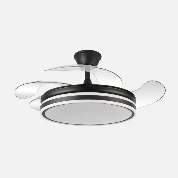 Ventilador MATANUSKA de color NIQUEL con tres aspas DESPLEGABLES de ABS muy resistentes de color transparente y seis velocidades. Motor DC .Realizado en metal, policarbonato y ABS. Tecnología LED integrada con una potencia de luz de 72 watios, 6120 lúmenes. Con 3 temperaturas de luz (3000, 4000, 6000 k). Control de aire para verano o invierno. Mando a distancia INCLUÍDO con MEMORIA DE COLOR incorporada y TEMPORIZADOR 1/2/4H. Con ALTAVOZ INCORPORADO y RECEPCIÓN BLUETOOTH . Su medida es de 32/47X55 centímetros con las aspas plegadas y de 32/47X108 centímetros con las aspas desplegadas, con dos medidas de tija para instalarlo a distintas alturas. Modelo también disponible en Blanco.
