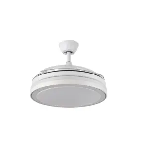 Exclusivo y original ventilador DC de la serie MODA con tres aspas DESPLEGABLES de ABS, en color NEGRO con difusor CAÑIZO BLANCO. Realizado en metal, ABS, textil y policarbonato. De estilo moderno y versátil, los diseños y colores de sus difusores hacen que este ventilador tanto en funcionamiento como en sólo modo lámpara, se haga el centro de atención de la habitación que ilumina. Ideal tanto para ambientes modernos como clásicos, muy acorde con los nuevos estilos de decoración combinando colores y texturas. Motor DC con seis velocidades ajustables. Tecnología LED integrada con una potencia de 72W, 7200 lúmenes y con 3 TEMPERATURAS SELECCIONABLES DE LUZ (3000-4000-6000K). Control de aire verano o invierno. Su medida es de 39/54X49X49 centímetros con las aspas plegadas y de 39/54X108X108 centímetros con las aspas desplegadas, con dos medidas de tija para instalarlo a diferentes alturas. Mando a distancia INCLUIDO con MEMORIA DE COLOR incorporada y TEMPORIZADOR 1/2/4 horas. Modelo disponible tanto en negro como en blanco y con una gran variedad de diseños y colores en sus difusores.