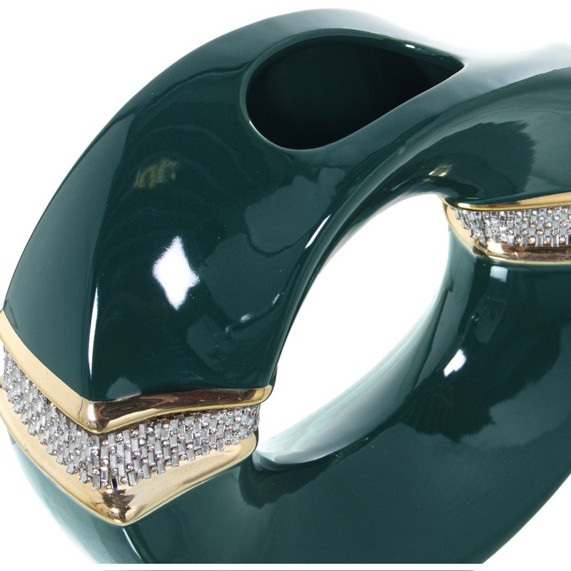 Detalles: Jarrón Aro Cerámica Verde y Oro C y Brillos Plata | Categoría: Decoracion Ceramica | Ref.: 52812